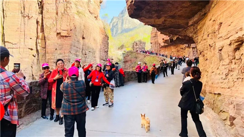 蔚為壯觀的絕壁長(zhǎng)廊、雄偉壯麗的紅巖絕壁、曼妙秀雅的山鄉(xiāng)風(fēng)韻深深地吸引著遠(yuǎn)道而來(lái)的游客。“郭亮掛壁公路一直是我向往已久的地方,今天走了掛壁公路、聽(tīng)了郭亮精神介紹,還看了這么美的太行春景,真是不虛此行。有機(jī)會(huì)還要再來(lái)萬(wàn)仙山。”游客李女士激動(dòng)地說(shuō)。