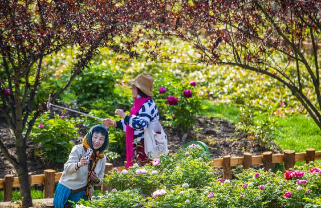 “真的太美了!明年這個時候,我還會來這里看牡丹花開!”從網(wǎng)上搶票趕來的光山游客李女士正拿著手機在牡丹花園里拍個不停。
