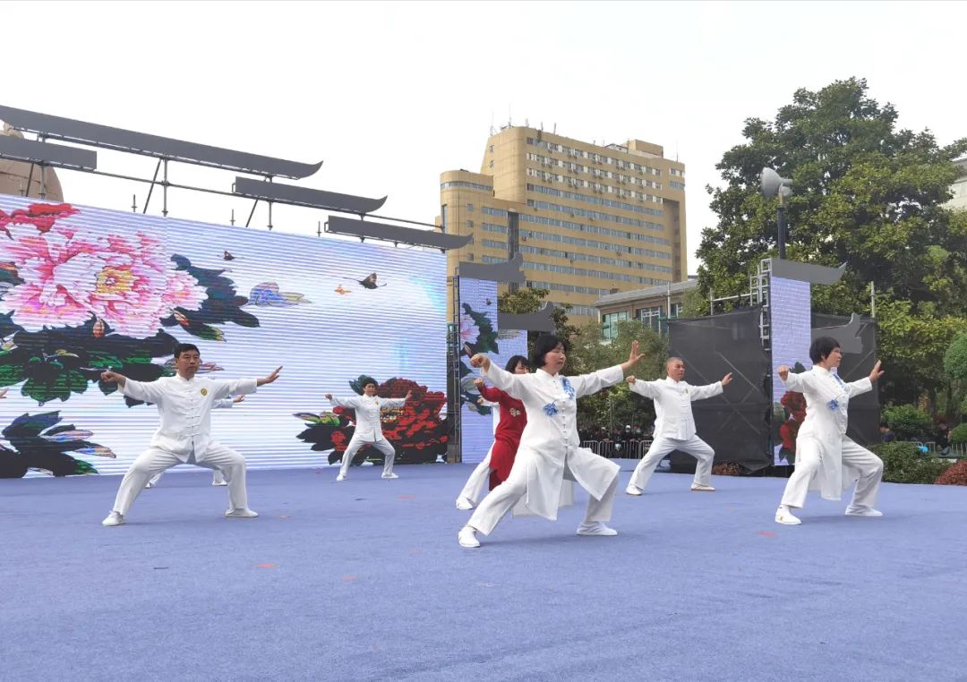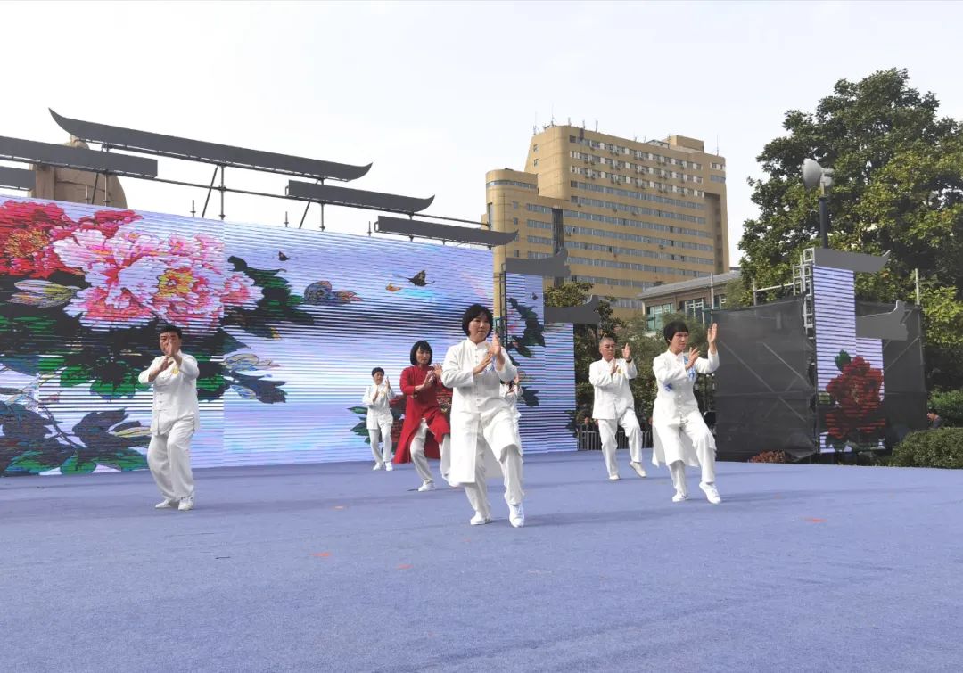 焦作市文化館(焦作市非物質(zhì)文化遺產(chǎn)保護中心)受邀參加,組織焦作宗正太極院的9名拳師現(xiàn)場表演陳氏太極拳。伴隨著優(yōu)美的音樂,身著統(tǒng)一太極服的拳師們神態(tài)自若、凝神斂氣,為現(xiàn)場觀眾奉獻了一段精彩的太極拳表演。整齊劃一的動作,剛中帶柔,柔中寓剛,動中有靜,靜中有動......拳師們的招式把太極拳剛?cè)岵、動靜相兼、博大精深的特性表現(xiàn)得淋漓盡致,贏得現(xiàn)場觀眾陣陣掌聲。