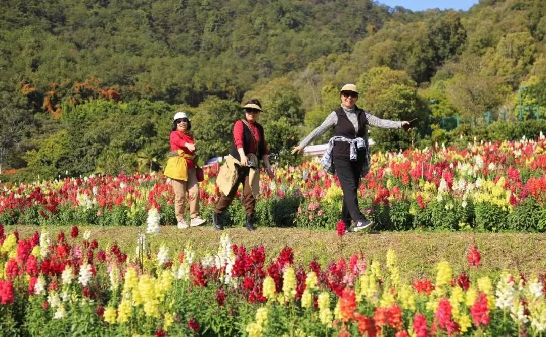 金魚草、胡尾毛地黃、西洋大濱菊、孔雀草、萬壽菊、美麗月見草、蘭香芥,你聽過沒聽過的,都在一片姹紫嫣紅中競相開放。