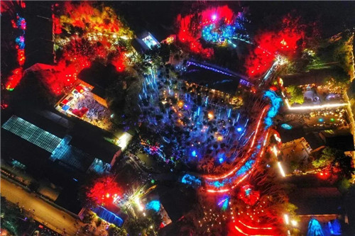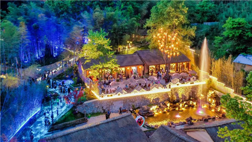 春夜微涼,流光溢彩的花燈打破夜晚的靜謐,中原竹寨里的各處,綴滿了燈光,光影交相輝映,將這寂寥的山間,打造成一個如夢似幻的仙境。
