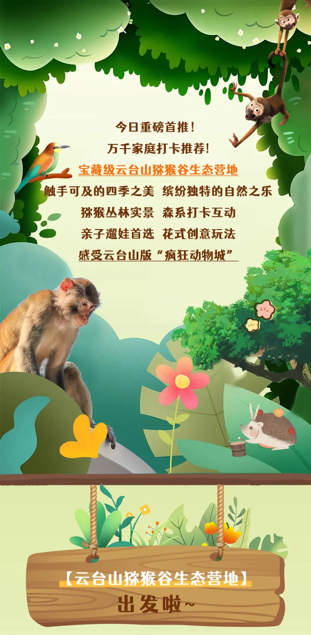 世界萬物帶孩子去聽、去看、去感受實(shí)景科普生態(tài),親近自然歡樂無限,獼猴、金剛鸚鵡、孔雀、豪豬、萌鴨……感受云臺山里的“瘋狂動(dòng)物城”。