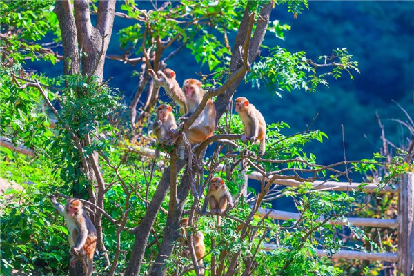 樹影斑駁 惠風(fēng)和暢 山野叢林,是游客最喜愛的親子互動(dòng)景點(diǎn)。在這里,猴兒們單臂爬山,跳躍懸崖峭壁之上,時(shí)不時(shí)上演猴王爭霸,自由地穿梭在林谷山水間。