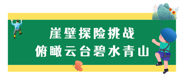 攀巖,探索大自然廣袤空間;實(shí)戰(zhàn),體驗(yàn)用力向上的樂趣;收獲,感受冒險(xiǎn)挑戰(zhàn)的勇氣,親子互動(dòng)挑戰(zhàn) 共同構(gòu)建美好回憶。