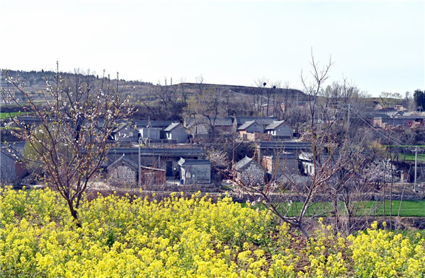 春天山崖上漫山開放的油菜花和寧靜的寨東村交相輝映 李焱 攝