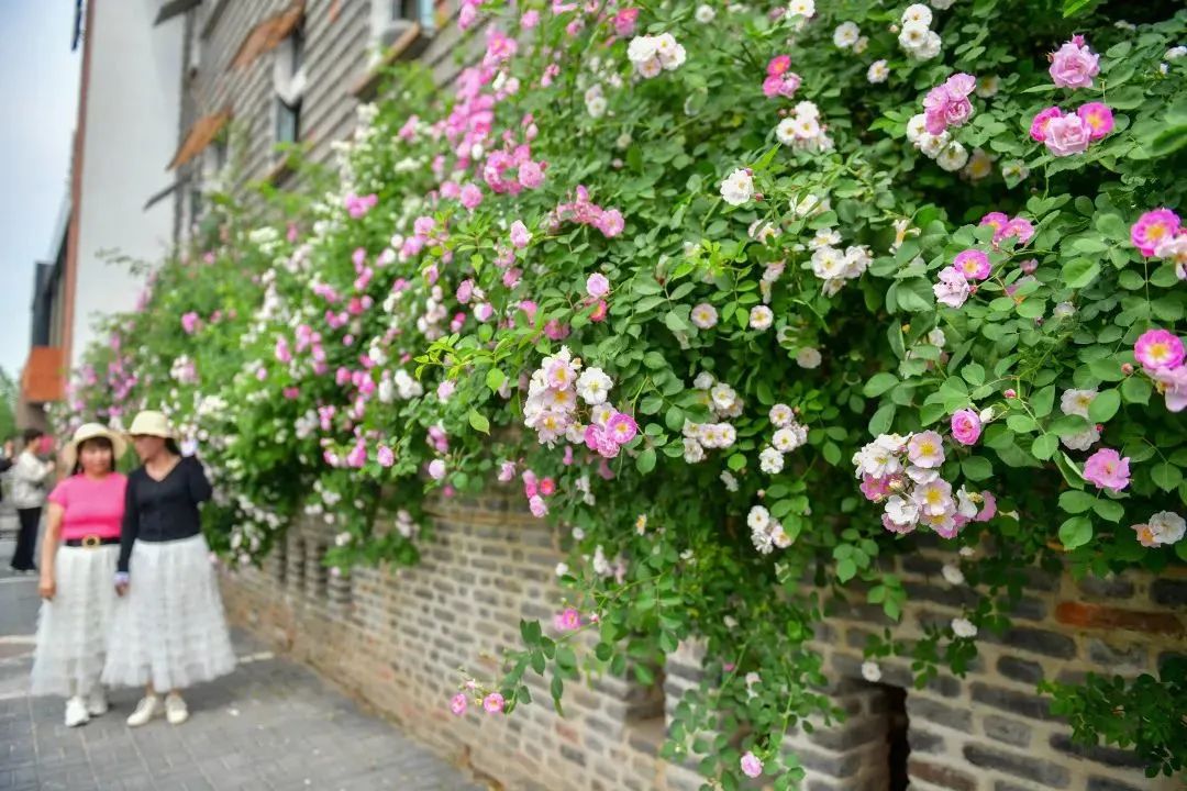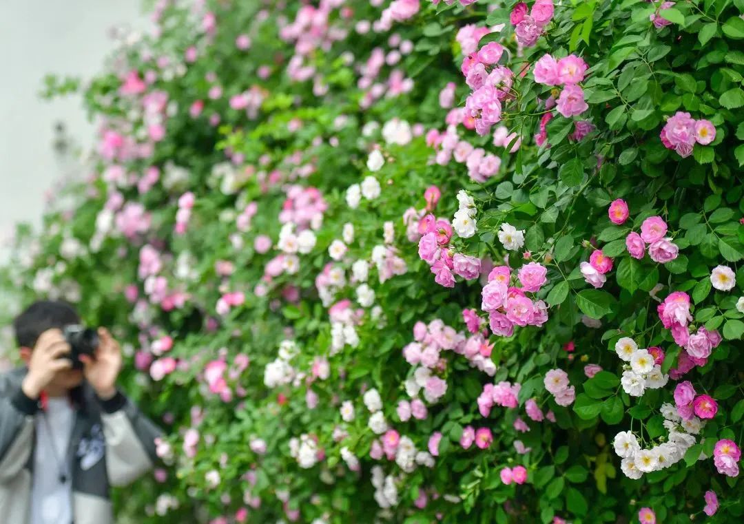 洛龍區(qū)太康路和望春門街交叉口附近不少薔薇花陸續(xù)開放,吸引不少市民前來拍照。