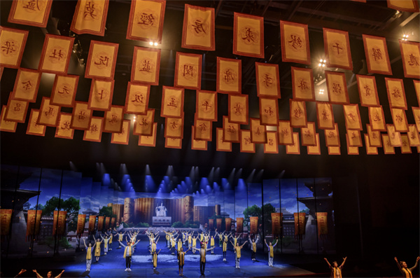 4月20日晚,癸卯年黃帝故里拜祖大典前夕,參加第十六屆黃帝文化論壇暨拜祖大典的部分領(lǐng)導(dǎo)及海內(nèi)外近500名嘉賓來到黃帝千古情景區(qū),觀看大型歌舞《黃帝千古情》。