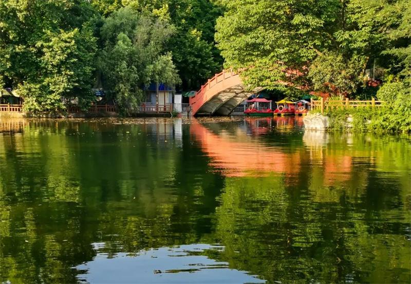 浉河公園位于信陽市位于解放路與申城大道路口,園內除了植物景觀還有游樂設施和動物園。游客可以乘船游湖,可以體驗鬼屋和海盜船,可以近距離觀賞駱駝、猴子、老虎、浣熊、孔雀等多種動物。