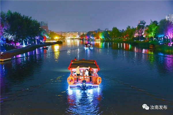 汝南因水而美、因水而興、因水而名。汝南縣立足“古城、名寺、水生態(tài)”的城市定位,深入推進(jìn)“四水同治”,實(shí)施了中心城區(qū)水系治理項(xiàng)目,開挖、治理5條河道,以汝河水系為紐帶,把天中山風(fēng)景區(qū)、南海禪寺風(fēng)景區(qū)連通起來,實(shí)現(xiàn)全縣環(huán)城水系貫通。2022年4月,北汝河——南海濕地聯(lián)通船閘順利建成,“水上環(huán)游汝南城”“水上夜游汝南”旅游線路開通運(yùn)營(yíng),游客在船上就能領(lǐng)略汝南這座千年古城的獨(dú)特魅力。