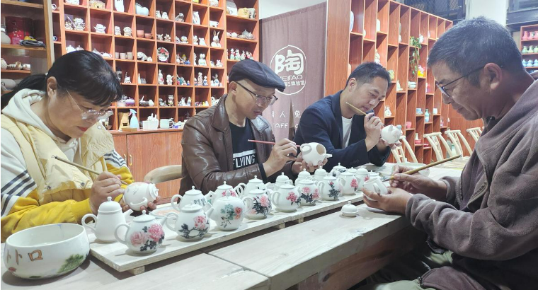 “陶瓷自古與人類的生活息息相關(guān),這種泥水與火結(jié)合的陶瓷彩繪藝術(shù),讓瓷器有了生命語言。”南陽市非物質(zhì)文化遺產(chǎn)泥塑的代表性傳承人李顯禮告訴記者,他和幾位陶藝師負(fù)責(zé)為大家燒制作畫的茶壺,書畫老師則以特殊的繪畫顏料,在淡雅的素坯上描繪出自己心中最美的月季,這些個性創(chuàng)作符號,賦予了月季更豐富的文化靈魂。