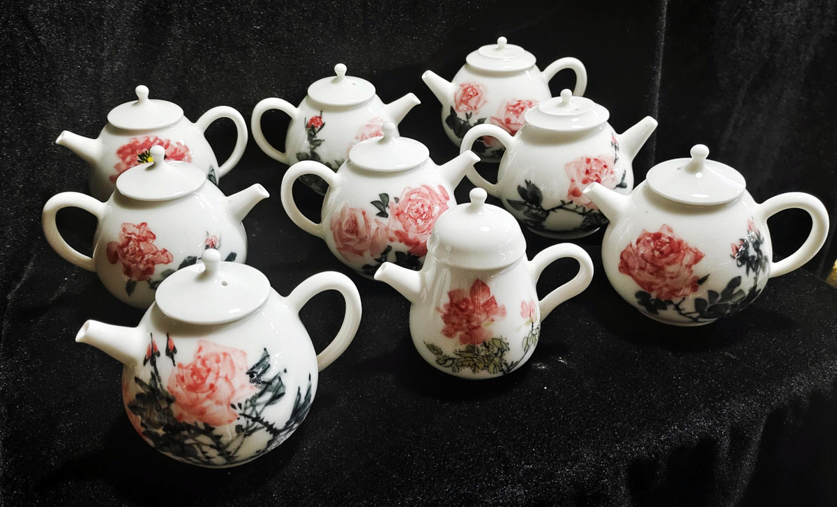 臥龍區(qū)美術(shù)家協(xié)會副主席、臥龍月季畫院副院長康大濤表示,陶瓷茶壺上畫上清麗的月季花,增添了文化氣息,這種國畫和陶瓷藝術(shù)相結(jié)合的創(chuàng)作形式,讓它的實用性和藝術(shù)性疊加,更受人歡迎,也讓傳統(tǒng)文化的內(nèi)涵得到升華。