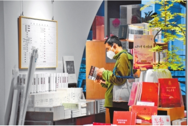 4月23日,讀者在鄭東新區(qū)兆熹書店選購圖書。王星 攝