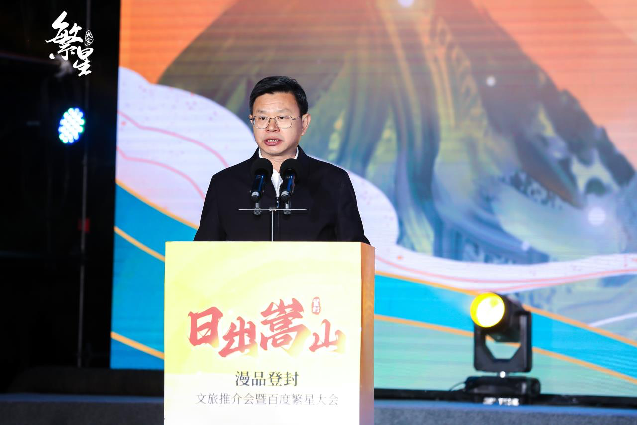 登封市委書記辛紹河作開場(chǎng)致辭,對(duì)本次大會(huì)主題日出嵩山含義進(jìn)行闡釋——“日出嵩山,代表著登封文旅人內(nèi)心深處的美好愿望,期望嵩山旅游事業(yè)可以永遠(yuǎn)像嵩山峻極峰的日出一樣,時(shí)時(shí)刻刻都朝氣蓬勃、充滿希望”。