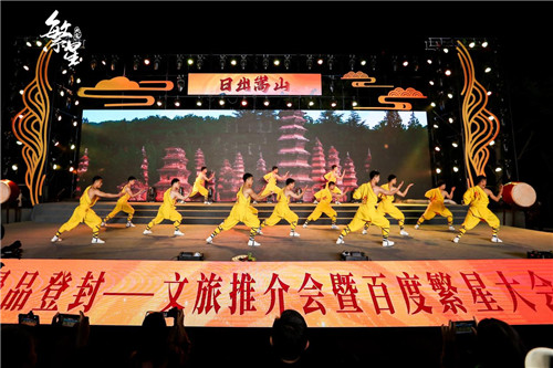 作為享譽(yù)全球的“少林文化”發(fā)源地,登封嵩山少林景區(qū)依傍雄險(xiǎn)奇秀的嵩山,容納著古代四大書院之一的嵩陽書院、中國(guó)道教文化策源地中岳廟等16處全國(guó)重點(diǎn)文物保護(hù)單位,這些中華文化的寶藏讓登封這座城市熠熠生輝。為了能讓大眾更好的體驗(yàn)豐富而多元的嵩山文化,本次“日出嵩山 漫品登封”百度繁星大會(huì)首次采用沉浸式舞臺(tái)劇的形式,將天地之中、少林禪武、嵩陽理學(xué)、中岳道統(tǒng)、帝王封禪等歷史文化瑰寶濃縮于1小時(shí)的演繹之中,進(jìn)行古今交相輝映串聯(lián),給現(xiàn)場(chǎng)觀眾帶來了視聽研一體的景區(qū)推介盛宴。