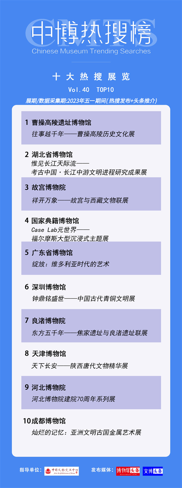 中博熱搜榜今日發(fā)布最新一期(第40期)“博物館十大熱搜展覽推介”,安陽(yáng)曹操博物館《往事越千年——曹操高陵歷史文化展》沖上全國(guó)博物館十大熱搜展覽TOP1。