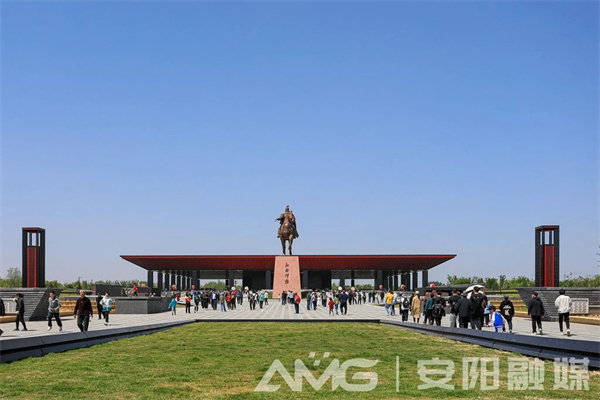 曹操博物館由遺址展示區(qū)、博物館展示區(qū)及陪葬墓展示區(qū)組成。其中,遺址展示區(qū)建筑面積近1.85萬(wàn)平方米,由神道遺址、陵前建筑遺址、圍壕遺址、曹操陵墓等組成。
