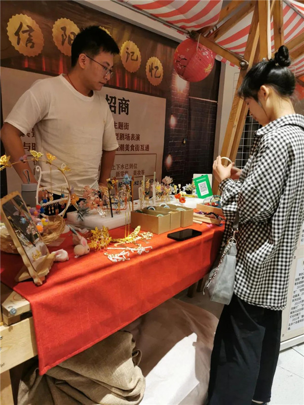 文化在身邊,非遺盡可賞。在YES青年·文創(chuàng)市集,烙畫、剪紙、糖畫、石畫、布藝、葫蘆烙、藍草木染等40多個非遺展位嵌入其中,傳統(tǒng)造型和山哥茶妹IP相映成輝,非遺傳承人從互動中汲取創(chuàng)新的靈感,游客從非遺中感受文化的魅力。在市區(qū)小橋胡同、中山鋪、天潤廣場等地,點茶、石版畫、毛底布鞋和大漆工藝等非遺傳承人現(xiàn)場制作演示,與廣大游客親密互動,特別是少年兒童與家長的共同參與,少長相宜。攝影師、直播達人和美好信陽推介官們對鏡頭,找亮點,用瞬間記錄城市美好,美圖美照、短視頻、直播……信陽非遺穿越時空,走進萬千大眾。線下,顧客如云,購者為眾。據悉,茶文化節(jié)期間,全市非遺衍生品售賣100多萬元,極大的激發(fā)了全市非遺人的信心。