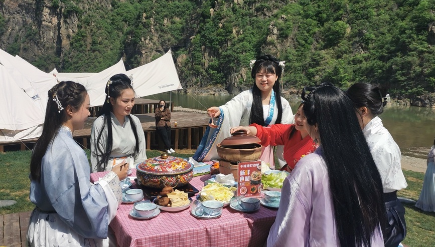 嵩縣將“顛覆性創(chuàng)意、沉浸式體驗、年輕化消費、移動式傳播”發(fā)展新理念植入,把穿漢服、研學行、學國學、親子游與賞花、品文化、享美食等各種體驗相結(jié)合,文旅花式玩法不斷創(chuàng)新,豐富沉浸式文旅新業(yè)態(tài),讓鄉(xiāng)村旅游迸發(fā)出新活力。