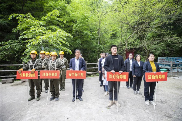 為保障游客的人身財(cái)產(chǎn)安全,維護(hù)景區(qū)正常旅游秩序,本著“安全第一、預(yù)防為主”的原則,重渡溝景區(qū)組織開展“雙靈索道應(yīng)急救援演練”。