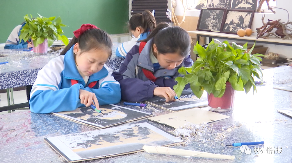 “我是從五年級(jí)開始學(xué)雕刻的,一直到現(xiàn)在。一到延時(shí)課,我就會(huì)來這里刻。放學(xué)后我也常常把版畫帶到家里接著刻。我想把紅旗渠的故事刻到畫里、收到書里,讓更多的小朋友們知道林州有條‘人工天河’紅旗渠。”林州市西街學(xué)校學(xué)生申淑賢說。