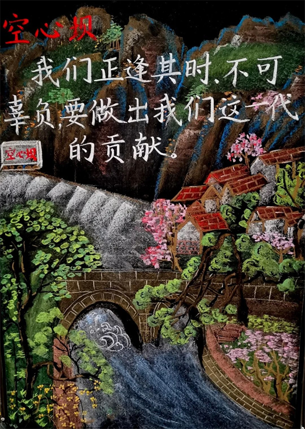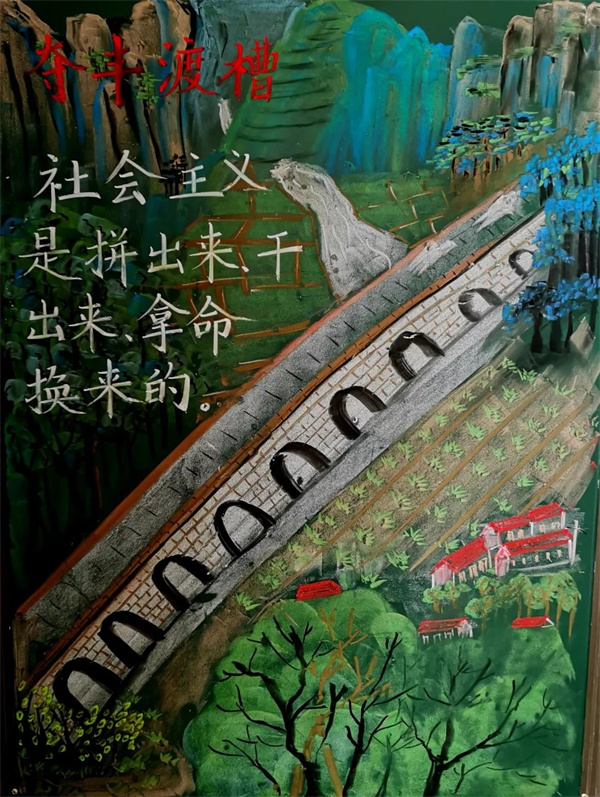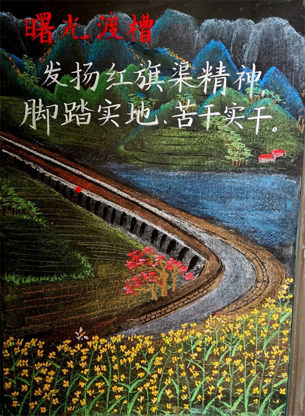 粉筆書畫紅旗渠!是的,用普通粉筆勾出的紅旗渠。