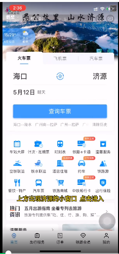 近日,12306平臺“城市之窗”,為濟源進行城市形象宣傳,濟源文旅借助12306平臺,塑造城市形象。讓吃、住、行、游、購、娛密不可分。