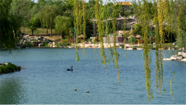 清風(fēng)徐來,同心湖畔的湖水泛起絲絲漣漪,三三兩兩的黑天鵝在湖里游弋,此刻的時光是靜謐的也是和諧的。