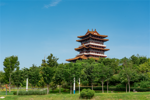 三五好友一起漫步湖邊或休憩小坐,沉醉在這湖光美景中,抬頭便是氣宇軒昂的軒轅閣,亭臺樓閣間盡享初夏好時光。