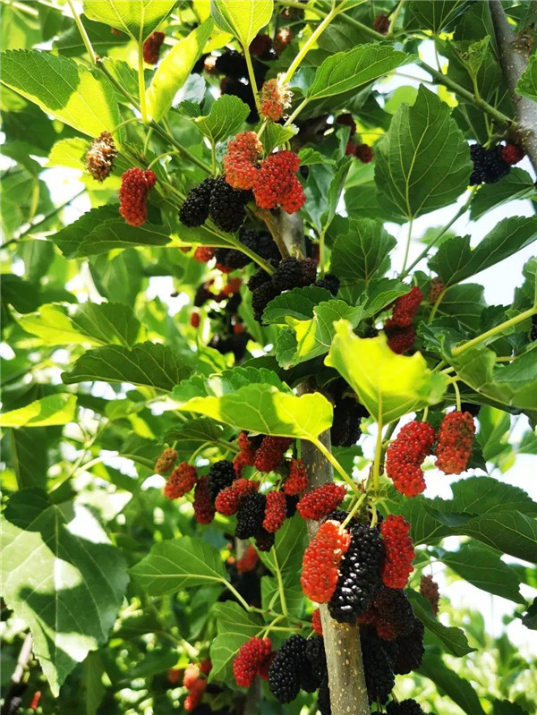 位于新安縣倉(cāng)頭鎮(zhèn)張村的千嘴山生態(tài)園引進(jìn)了新品種白桑葚,并種植了多株果樹。