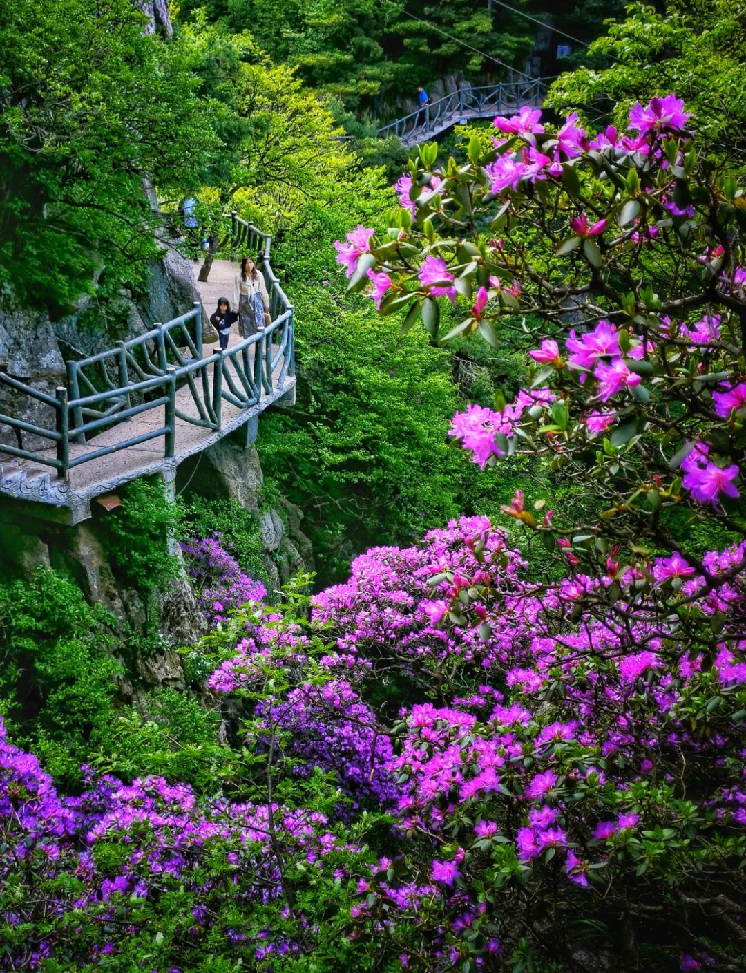花如“西施”,您如花。走過飛云谷,就是杜鵑長廊,登上北觀景臺,就是杜鵑花海。陪您慢慢徜徉,美好與您共享,一起欣賞杜鵑花那嫵媚的笑臉、婆娑的舞姿,一起感受大自然的寧靜與悠閑,在花叢中踏歌起舞。笑容蕩漾在您的臉上,幸福在心底悄悄綻放。
