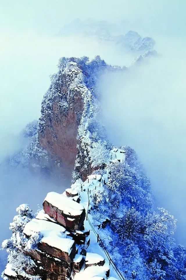 神農(nóng)山的龍脊長(zhǎng)城之上生長(zhǎng)著1.6萬(wàn)多株白鶴松,在懸崖絕壁上展現(xiàn)著萬(wàn)種風(fēng)情。