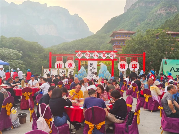 在新鄉(xiāng)南太行八里溝景區(qū),游客不僅能一飽“眼”福,還能來(lái)一波“口”福,這個(gè)季節(jié)正值山水秀麗,快帶上你的家人朋友,來(lái)八里溝一起賞美景吃大席吧!
