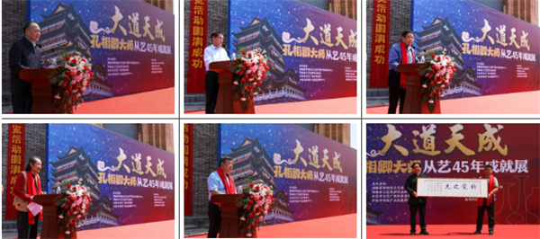 隨后,中國工藝美術協(xié)會原會長、國務院參事室中央文史研究院特約研究員周鄭生、河南省工業(yè)和信息化廳二級巡視員、消費品工業(yè)處處長寇守峰、中國工藝美術大師吳元全、仵應文河南省工藝美術協(xié)會副會長黨經(jīng)緯分別致辭,河南大學美術學院黨委書記楊江濤向孔相卿大師贈送書法作品。