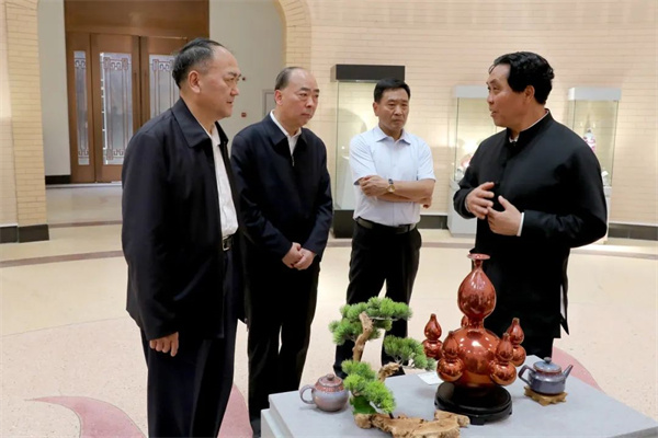 開幕式結束后,各位領導及嘉賓參觀了“大道天成----孔孔相卿大師從藝45年成就展”,本次展覽分五大板塊共一百多件作品,分別是孔相卿大師從藝四十五年,在不同時期創(chuàng)作的具有不同風格的代表性作品。