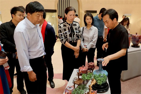 5月13日上午,中國鈞瓷文化園賓朋滿座,熱鬧莊重!由河南省非物質文化遺產(chǎn)保護和智慧化中心、河南省工藝美術行業(yè)協(xié)會、許昌市文化廣電和旅游局、許昌市鈞瓷產(chǎn)業(yè)發(fā)展服務中心、禹州市文化廣電和旅游局、神垕鎮(zhèn)人民政府主辦,禹州市非物質文化遺產(chǎn)保護中心、禹州市鈞瓷行業(yè)協(xié)會、禹州市鈞瓷文化博物館承辦的“大道天成----孔相卿大師從藝45年成就展”正式開幕。