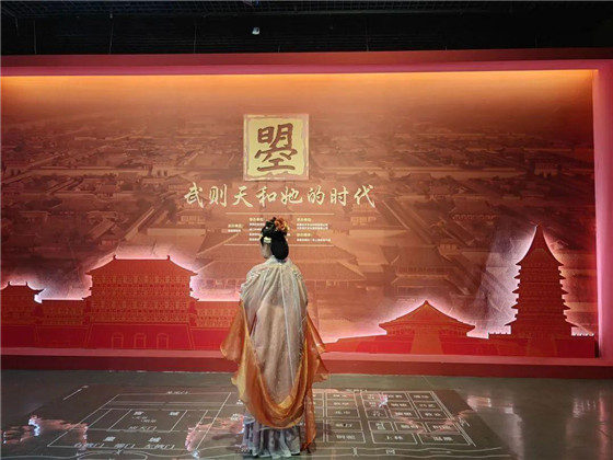 5月18日當(dāng)天,身穿全套傳統(tǒng)漢服、妝發(fā)齊全的游客,可半價游覽位于洛陽博物館一樓臨展廳的“曌——武則天和她的時代”特展。
