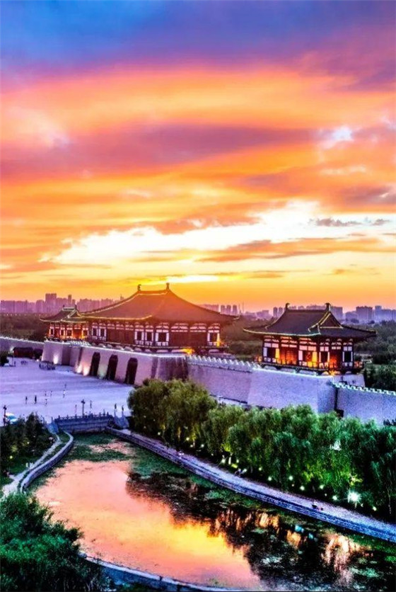 走在架于遺址之上的鋼化玻璃棧道上,門道、馬道、墩臺、隔墻等遺跡就在腳下,一只只宮燈將門砧石、車道石等歷史遺物點亮,在這強烈的沉浸感中,令人頃刻夢回大唐。