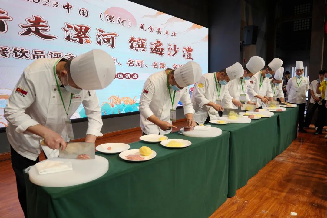 樊噲肘子、澧河桂花魚、螺灣豌豆黃……伴著輕快的樂(lè)曲,來(lái)自漯河83家餐飲企業(yè)和商戶的25名大廚及67名小吃制作者齊聚食尚年華景區(qū),用精湛的刀工、精致的雕花、精心的擺盤,將各類食材烹制成一道道、一盤盤色香味形俱佳的菜肴,拉開(kāi)了“行走漯河 饌遍沙澧”美食品評(píng)之“名店、名廚、名菜、名吃”評(píng)選活動(dòng)暨漯河市第六屆餐飲行業(yè)職業(yè)技能大賽評(píng)選比賽活動(dòng)集中品評(píng)環(huán)節(jié)的序幕,掀起2023中國(guó)(漯河)美食嘉年華的又一次高潮,F(xiàn)場(chǎng)展示百余種名吃、70余個(gè)名菜,不僅為漯河餐飲行業(yè)搭建了交流的平臺(tái),更為廣大游客帶來(lái)味蕾與視覺(jué)的雙重享受。