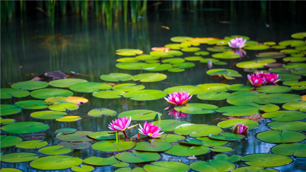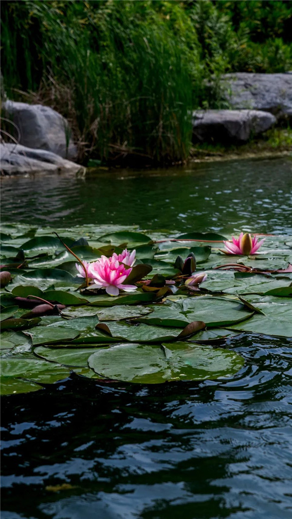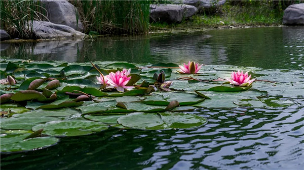 在粼粼波光的映照中,滿池的睡蓮競相綻放,盈盈舒展的花瓣在綠葉的點(diǎn)綴下更顯動(dòng)人。微風(fēng)拂過,一池漣漪帶起芙蓉顫動(dòng),美如油畫。