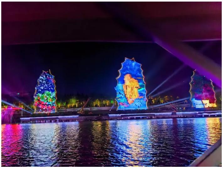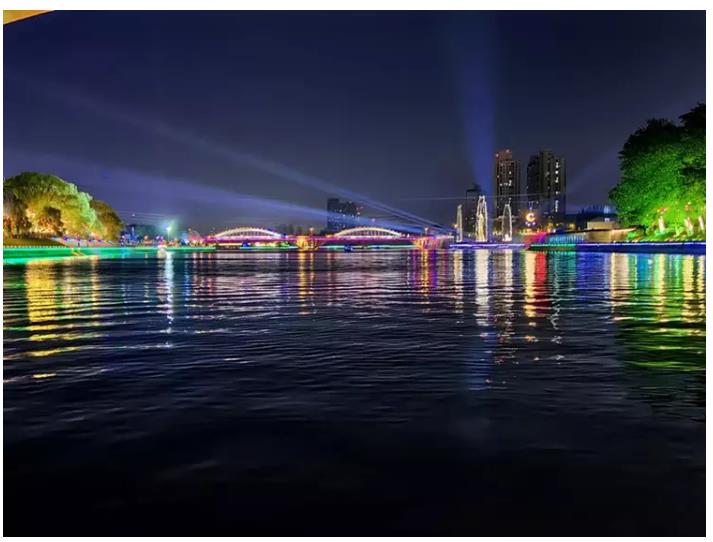 “快看,帆船亮了!”5月15日晚,漯河沙澧河風(fēng)景區(qū)紅楓廣場,市民王麗高興地拿出手機(jī)拍攝元宇宙燈光秀,和身邊的朋友一起感受這場精彩的視覺盛宴。