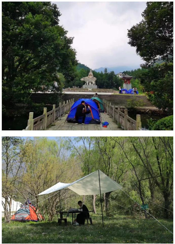 商於古道,仲景小鎮(zhèn),營在景中,景在畫中,如此良辰美景之地,月夜清風(fēng),吹起發(fā)絲幾縷亭臺樓閣,意境悠揚(yáng)。搭一頂帳篷,乘著夜色,盤龍溪上清歌悠揚(yáng)。