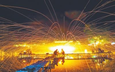 獲嘉縣同盟古鎮(zhèn)打鐵花表演現(xiàn)場。韓萬魁 攝