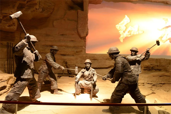 在515米長(zhǎng)的展線上,采用空間環(huán)境、雕塑、繪畫(huà)、燈光、多媒體等藝術(shù)手段,通過(guò)一幅幅珍貴的歷史照片、一件件修渠文物,立體展現(xiàn)了林州人民十年奮戰(zhàn),改造河山的震撼場(chǎng)景。
