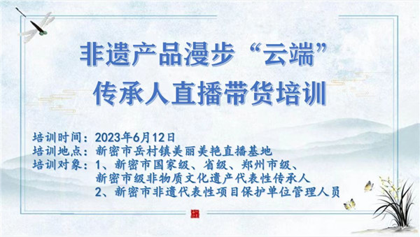 依托美麗美艷直播基地,宣傳新密厚重文化,傳承發(fā)揚(yáng)優(yōu)秀非物質(zhì)文化遺產(chǎn),開(kāi)展傳承人直播帶貨培訓(xùn),非遺+新興的互聯(lián)網(wǎng)業(yè)態(tài),讓非遺產(chǎn)品借助直播電商走出新密,走向全國(guó)。