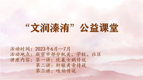 為弘揚(yáng)和傳承本地區(qū)中華優(yōu)秀傳統(tǒng)文化,講好非遺新密故事,組織伏羲女?huà)z傳說(shuō)、軒轅黃帝傳說(shuō)、岐伯傳說(shuō)項(xiàng)目走進(jìn)社區(qū)、學(xué)校、機(jī)關(guān)開(kāi)展公益講座,豐富群眾精神文化生活,激發(fā)社會(huì)各界對(duì)中華優(yōu)秀傳統(tǒng)文化的認(rèn)知和參與熱情。增強(qiáng)文化認(rèn)同感,構(gòu)建文化自信堅(jiān)實(shí)基礎(chǔ)。