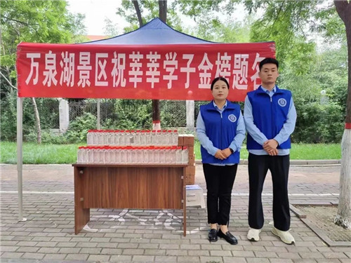 6月7日至8日高考期間,萬泉湖景區(qū)在林州市內(nèi)多個考點門口設(shè)置駐點,組織志愿者參與“助力高考”服務(wù),向考生及家長提供淇淅山泉水免費使用,同時也提供緊急情況下的免費幫助。