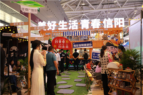 記者在現(xiàn)場看到,前來信陽展館觀展的游客絡繹不絕,大家紛紛為信陽特色文創(chuàng)產(chǎn)品和充滿青春活力的城市形象點贊。