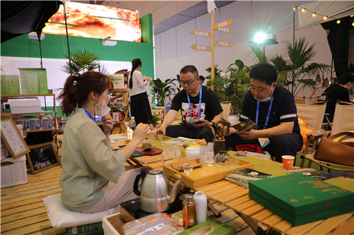 精彩的茶藝表演、時尚潮流的露營吸引了不少游客或駐足了解,或“圍爐煮茶”、品茗休閑。