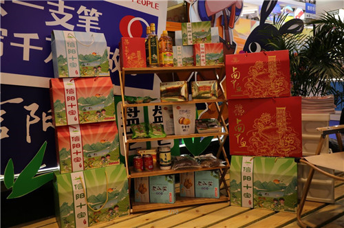 信陽十寶、豫道酸辣粉等信陽特色農(nóng)產(chǎn)品精心設計創(chuàng)意包裝“吸睛”,引來很多游客品嘗。