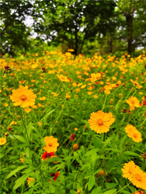 一叢叢、一片片,在林間,在路旁,金雞菊肆意盛開,與蜜蜂為伴,讓這夏日也熱鬧起來。